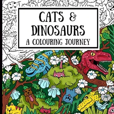 Cats and Dinosaurs A Colouring Journey: Fun Detailed Book for Adults Children
