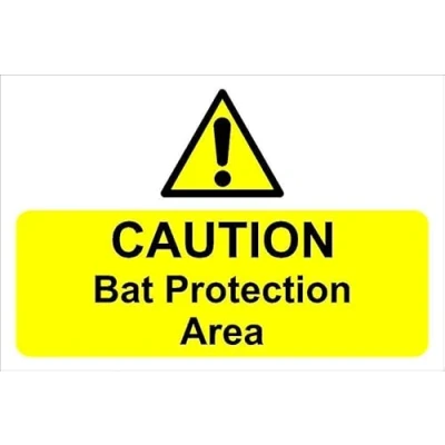 Caution, bat protection area, warning sign Self adhesive sticker (200mm x 150mm)