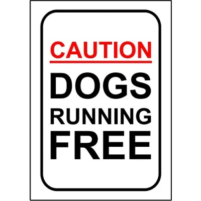 Caution dogs running free safety sign 3mm Aluminium sign 300mm x 200mm Digitally printed and laminated for extra durability 10mm Radius rounded corners no sharp edges