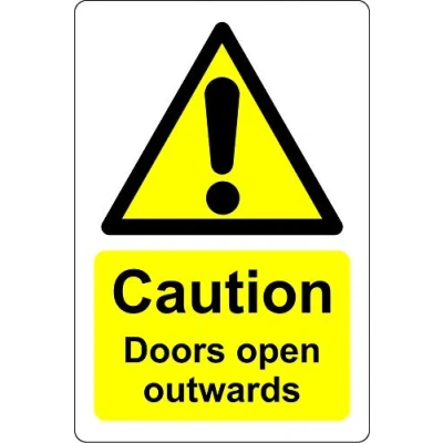 Caution doors open outwards door Safety sign Self adhesive sticker 200mm x 150mm