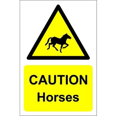 Caution Horses sign 1.2mm rigid plastic 300mm x 200mm Digitally printed and laminated for extra durability Drill and screw in position or use double sided tape to mount onto suitable surface.