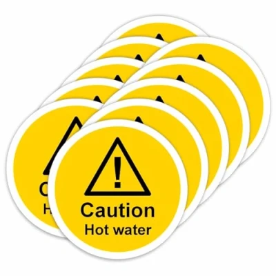 Clear Safety Messaging: These “Caution Hot Water” signs provide essential safety reminders for staff and visitors, ensuring awareness of hot water hazards in kitchens, bathrooms, or industrial areas. Durable Vinyl & Eco-Friendly: Made from high-quality polypropylene vinyl and printed using eco-friendly inks, these signs are built to last, providing a cost-effective solution for safety compliance. Waterproof & UV Resistant: With a matt laminate finish, these stickers are waterproof, weatherproof, and UV resistant, ideal for both indoor and outdoor use in high-traffic areas. Simple Self-Adhesive Installation: The self-adhesive backing allows for quick and easy installation on any clean, flat surface. Just peel and stick for a secure, long-lasting fit. Convenient 10-Pack for Multiple Locations: Measuring 80 x 80mm, this 10-pack offers excellent value, providing safety signage for kitchens, bathrooms, or any area where hot water is present.