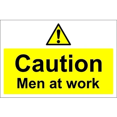 Caution men at work safety sign 1.2mm rigid plastic 300mm x 200mm