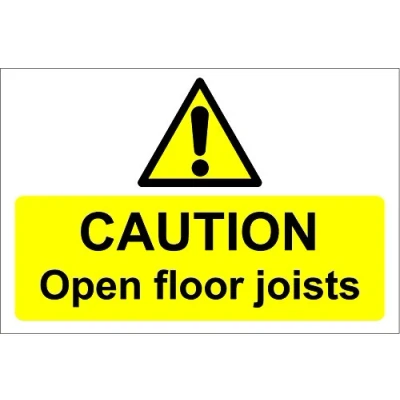 Caution Open Floor joists Sign 1.2mm Rigid Plastic 300mm x 200mm