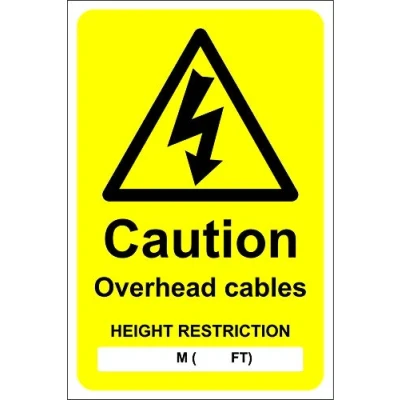 Caution overhead cables height restriction with space to write Safety sign 1.2mm Rigid plastic 600mm x 400mm
