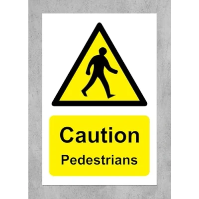 Caution Pedestrians Safety sign 1mm Plastic sign Digitally printed for extra durability Drill and screw in position or use double sided tape to mount onto suitable surface.