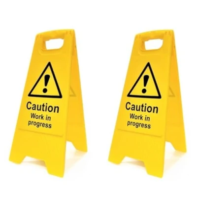Caution Work In Progress Floor Sign, Pack of 2 Heavy Duty A Boards, Double Sided Message, Lightweight & Easily Transportable