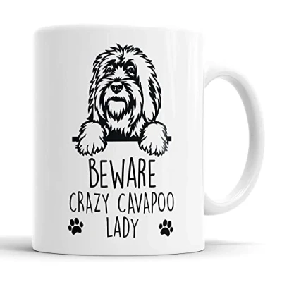 Cavapoo Mug Beware Crazy Lady Gift Dog for Birthday Christmas Friend, Mum, Auntie, Sister Ceramic Cup