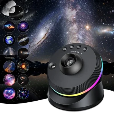 【13 in 1 Real Planetarium Meteor Projector】Immerse yourself in a breathtaking starry sky with our planetarium meteor projector. This upgraded planetarium meteor projector features a meteor effect and offers 13 unique night lamp display scenes, including Solar System, Earth, Moon, The Milky Way, Marine Organism, Andromeda Galaxy, NGC7250-TYC 3203-450-1, Black Hole, UGC 1810, Valentine’s Day, Pillars of Creation, The Andromeda-Milky Way, and Small Magellanic Cloud, Transform your bedroom, living room, or even your kids' room into a tranquil and enchanting galaxy. 【4K HD Projection with Adjustable Focus】Our galaxy projector adopting advanced multi level wide-angle glass lenses for 4K ultra-clear projection to bring you a realistic starry sky. Rotating the top focusing head to adjust image clarity regardless of the projection distance. Support a projection distance from 6.56ft to 9.84ft and an area from 135.19sq.ft to 255.64sq.ft. 【Speed Adjustment and 360°Rotatable Nebula Projector】Feel immersed in the vast universe with the three-speed adjustment feature that simulates the rotation of a real night sky. The 360° rotatable nebula projector offers unlimited creative possibilities. Adjust the projection direction according to your personal preference and create an enchanting starry sky atmosphere in your bedroom, living room, or any other space. 【Auto-Off Timer and Super Quiet Operation】Never worry about forgetting to turn off the star projector, Set it to turn off automatically after the desired time and save energy. Additionally, this start projector won’t make any noise while working. creating a peaceful sleep atmosphere. 【Ideal Gift Choice for All Occasions】Whether it's a quiet night or a joyful party, our star projector night light is the perfect gift choice. Bring unparalleled visual enjoyment and a romantic mood to birthdays, weddings, anniversaries, parties, Children's Day, Christmas, and more. It's also a great addition to bedrooms, kids' rooms, game rooms, home theaters, or as room decorations. Surprise your friends, lovers, family, and kids with this special star projector night light.