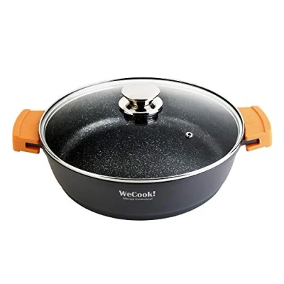 Experience sustainable cooking - The WECOOK! Cooking pot 32 cm with ecological Quantanium non-stick coating allows healthy frying without sticking and is free from PFOA, lead and nickel for an environmentally friendly kitchen Versatile use on all types of cookers - Whether on induction, vitro ceramic, gas or in the oven, this coated pot ensures perfect cooking results with its even heat transfer Robust quality for your kitchen - With a 5 mm thick cast aluminium construction reinforced with titanium, the WECOOK! offers Cooking pot maximum durability and is a reliable companion for everyday cooking Easy to use and care - Equipped with a tempered glass lid and removable silicone handles, the pot with lid is suitable for the oven and easy to clean in the dishwasher after use Elegant design meets function - The black pot blends seamlessly into any kitchen decor and is a real eye-catcher with its modern look, while it effortlessly masters a variety of cooking needs, Weight: 5.2690480618 Pounds, Manufacturer: WECOOK!