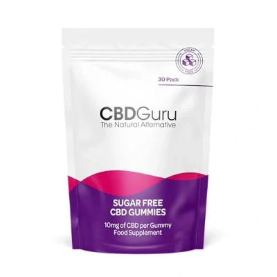 CBD Guru Sugar Free Gummies 10mg 30 Pack Mixed Fruit Flavour Broad Spectrum Gummy Bears for Sleep & Anxiety Support, 600mg Total Supplement