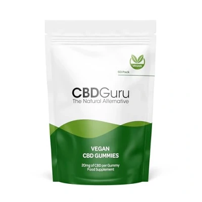 CBD Guru Vegan Gummies 20mg 60 Pack Mixed Fruit Flavour Broad Spectrum Gummy Bears for Sleep & Anxiety Support, 1200mg Total