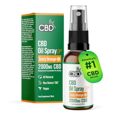 CBDFX 2000mg CBD Spray High Strength Flavoured Oil Zesty Orange Vegan Non GMO Blended with MCT Improved Purity All Natural No THC 30 ml (40 Days)