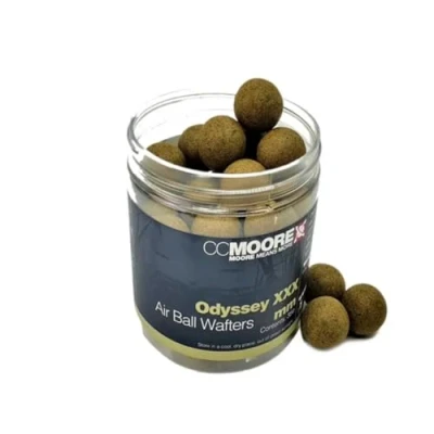 CC Moore Odyssey XXX Air Ball Wafters - Choice between several options - Perfect for use in combination with the entire Odyssey XXX Range. - Fishy flavour - Contains the same base mix as used in the Odyssey XXX Range - Durable pop ups with an air ball for buoyancy - Hard anti – coarse fish exterior but soft enough to be trimmed for buoyancy - Full of appetite stimulants - Leaves a nice scent trail - Can be used in all seasons These lightly floating, air ball wafters are made with the Odyssey XXX Base Mix to ensure that they match in colour and aroma with the Odyssey XXX boilies and other products in the successful Odyssey XXX range. They have a tough, anti – coarse fish, resistant exterior, but are soft enough to be trimmed to achieve the desired buoyancy for optimum rig performance!