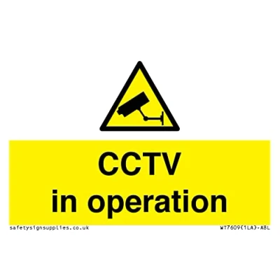 W913 : CCTV This sign is made from plastic semi-rigid 1mm 1mm thin plastic sign, can be screwed, stuck with adhesive, or attached with cable ties. Not suitable for hanging. A8 landscape Sign Text: CCTV in operation