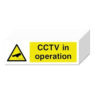 CCTV In Operation Signs 150mm x 50mm Pack Strong Adhesive Vinyl Stickers for Safety (10)