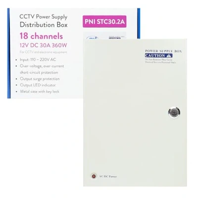 The PNI STC30.2A CCTV power supply is the ideal solution for powering video surveillance systems. With an output voltage of 12V , this product provides a constant and safe power supply for your CCTV cameras with a consumption of less than 30A .