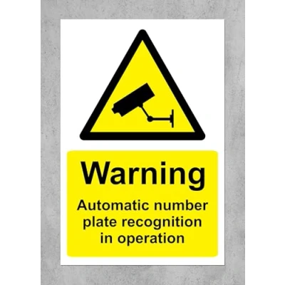 CCTV warning sign - Automatic number plate recognition in operation safety sign 1.2mm Rigid plastic 200mm x 150mm Digitally printed for extra durability Drill and screw in position or use double sided tape to mount onto suitable surface.