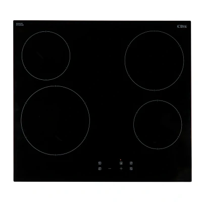 The CDA HC6621FR 60cm Four Zone Ceramic Hob features a sleek frameless black glass design with intuitive touch controls, 4 fast-heating Hi-Light ceramic zones, 9 power levels per zone, and key safety features such as a child lock and residual heat indicators, making it a modern and safe addition to any kitchen.