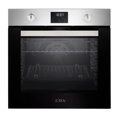 The CDA SG121SS Built-In Single Gas Fan Oven (70L, Stainless Steel, A Rated) combines the moist results of gas cooking with fan-assisted even heat, featuring a large 70L capacity, integrated electric grill, easy-clean enamel interior, flame failure safety, and a sleek, modern design for seamless kitchen integration.