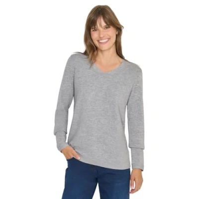 Cecil Women's 3015596 V Neck Jumper, Heather Silver Chalk Melange, XXL