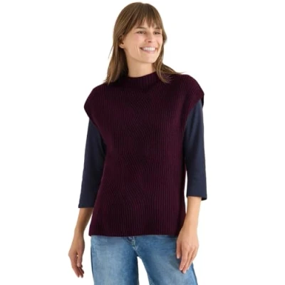Cecil Women's 3017057 Sweater Vest with Knitted Detail, Eggplant Red, S