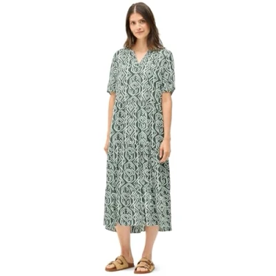 Knee-length dress Slit neckline Short sleeve Graphic pattern Soft Viscose