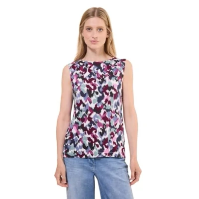 Women's top with wide straps Boat neck Gathering at shoulder Graphic pattern Viscose mix with stretch content