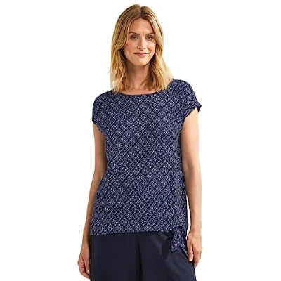 Cecil blouse with sleeves, knot detail on the hem and crew neck The lightweight women's viscose blouse is an all-rounder for summer days and goes with skirts, shorts and jeans alike The Cecil brand has a casual/sporty orientation, new customers recommend ordering one size smaller