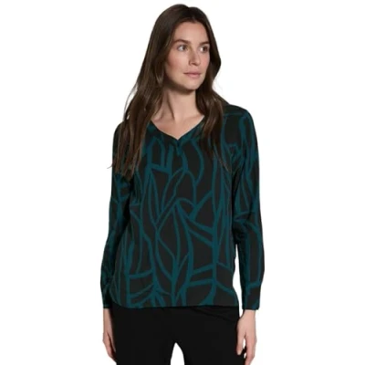 Women's blouse V-neck Long sleeve with cuffs and button Graphic pattern Soft Viscose