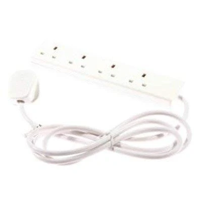 4 socket extension lead. A clear neon light shows when the plug is on. 13 amp fuse protects against power surges. 2 metre extension lead is perfect for hard to reach sockets. Colour: White.