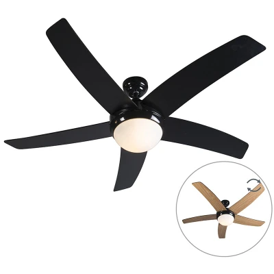Ceiling Fan Black with Wood Print 132cm Remote Control Cool