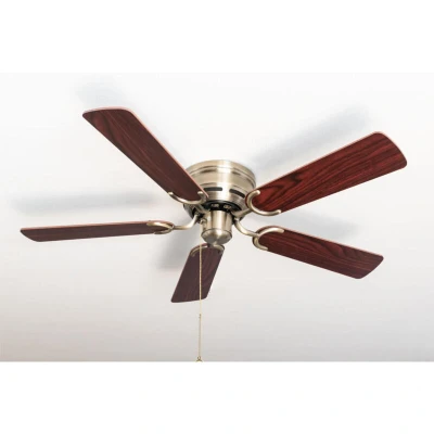 AmazonCeiling fan in classic style, antique brass housing, has powerful AC motor rosewood / dark walnut (dual optics/reversible blades), the high-quality sashes can be mounted on both sides Extra flat ceiling fan, total height of only 19 cm, suitable for rooms with particularly low ceilings Diameter 105cm - optimally suitable for rooms up to 15m². Fan control via included pull switch, can be upgraded with convenient wall switch