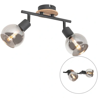 General description This Vidro spotlight will make your interior shine! Thanks to the combination of steel, wood, and smoke glass lampshades, it fits perfectly in your sturdy interior. The steel is beautifully finished in black, and the smoke glass gives it a mysterious yet atmospheric look. Brighten up your living room, study, or bedroom with the atmospheric Vidro spotlight! Technical specifications Length: 42 cm Height: 20.5 cm Depth: 10 cm Mounting plate diameter: 10 cm Bulb holder: E14 Max wattage: 2 x 25 W Voltage: 230 V Connecting voltage: 220V/230V Protection class: IP20 Dimmable: Yes (dimmer not included) Lightsource: Exclusive Compatibility and accessories Compatible with E14 LED filament light source (max 25 watts) Dimmer required for dimming (not included) Other information