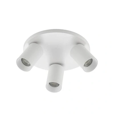 Lights.coBrinja 3-bulb ceiling spotlight with tiltable and rotatable light sources This attractive ceiling spotlight provides excellent illumination thanks to its three light sources, which can be directed in different directions. They can be tilted flexibly by 90 degrees and rotated by 350 degrees. The choice of suitable GU10 bulbs is left to the user. White and black decorative rings for the spotlights are also included in the scope of delivery. Brinja is made of aluminium and has a white surface finish. This simple look is modern and ideal for both private and commercial use. The modern style can be combined with different interiors.