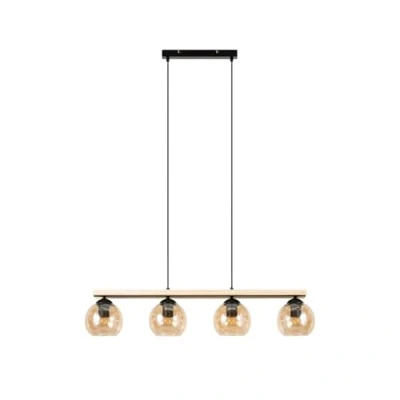 Crafted with meticulous attention to detail, the Enrique Pendant Lamp features a beautiful blend of materials. The combination of matte black metal, light oak wood, and amber-golden glass reflects high-quality craftsmanship where each element complements the other. The light oak wood beam supports four stylish glass shades that radiate a warm glow, making this lamp a perfect choice for creating a cosy atmosphere.