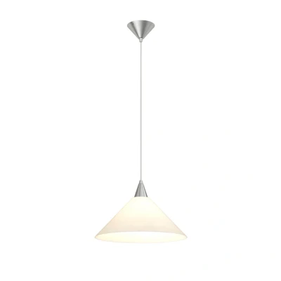Petra Pendant lamp Light White is an obvious choice if you are looking for comfortable lighting and a stylish lamp that discreetly enhances the aesthetics of your interior design. The neutral colour combination of white glass and brushed metal and the beautiful cone shape give the lamp a clean and modern look. The lamp has a characteristic cone shape that is repeated in both the lampshade and the ceiling fitting.