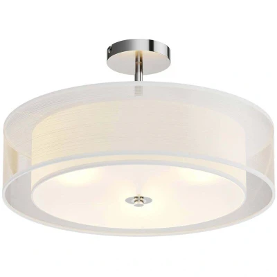 The Pikka Ceiling Lamp showcases a unique arrangement of two distinct lampshades, offering a refined visual experience. The inner lampshade is crafted from creamy white textile, housing three E27 sockets that provide warm, indirect lighting. This inner shade ensures a gentle illumination that fills the room with a cozy atmosphere, while a disc-shaped cover at the bottom diffuses the light evenly for a soft, uniform glow.