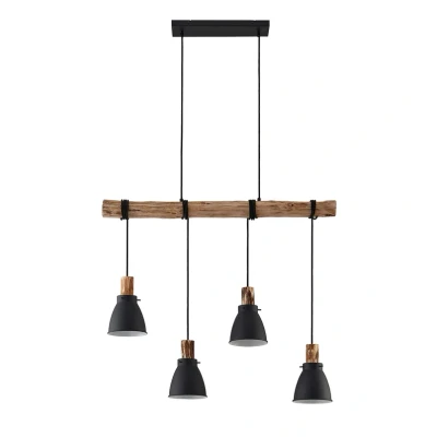 The Trebale Pendant Light is a beautifully designed lighting fixture that seamlessly blends functionality with aesthetic appeal. With its four metal lampshades adorned with wooden elements, this pendant light serves as a striking addition to any space, particularly dining areas, kitchens, or living rooms. The design showcases a combination of matte black lacquered metal and eucalyptus wood, bringing a touch of modern elegance to classic home décor.