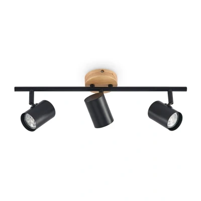 Featuring a stylish industrial design, the Xiomara Ceiling Light boasts a sleek black finish complemented by a warm light wood wall bracket. The contrast between the monochrome metal and natural wood elements creates a sophisticated aesthetic that enhances any room's vibe. Each of the three cylindrical lampshades is made of black steel, providing direct yet glare-free illumination. Their individual tilt functionality allows you to direct light precisely where needed, making it an excellent choice for highlighting specific areas within your living room, dining room, hallway, or even commercial spaces like cafés and shop displays.