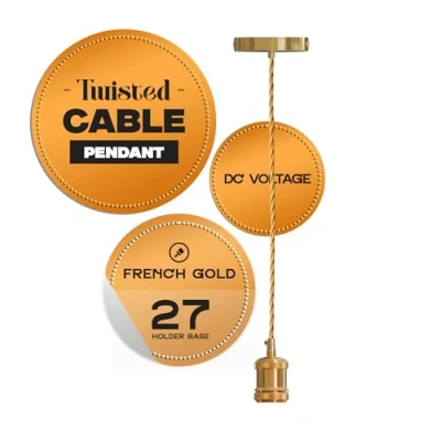 DESIGN: Enhance your space with these retro brass pendant lights, crafted with a quality twisted braided flex cable, sturdy metal holder, and matching ceiling rose, perfect for adding a warm, industrial touch to kitchens, bars, hallways, or dining areas. DIMENSION: The lamp holder measures 7 cm in height and 5 cm in width, with a 4 cm open cable entry hole. The ceiling rose is 2.5 cm high and 10 cm in diameter. Each light includes a 195 cm adjustable twisted fabric cable, suitable for both high and low ceilings. E27 BULB COMPATIBLE: Fits all standard E27 bulbs, including Edison, LED, and smart bulbs, and comes with a 10 cm ceiling rose and mounting kit for quick, hassle-free installation with UK-standard 220–240V wiring. PACKAGE INCLUDES: 1x Brass E27 Lamp Holders (70mm x 50mm), 1x Ceiling Roses (25mm x 100mm), 1x 195cm Twisted Cables, Screws & Fixings (with bulbs). ABOUT US: At DC VOLTAGE, we believe lighting should do more than just illuminate,it should inspire. With over 10 years of experience, we’re committed to delivering standout lighting solutions that blend smart design with everyday function. Our wide selection of fixtures and shades helps you shape the atmosphere you want, without overcomplicating the process.