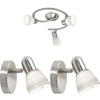 Ceiling Spot Light & 2X Matching Wall Lights Round Satin Nickel Opal Glass Lamp Linear Spotlight Kitchen Island Dining Adjustable Set Kit