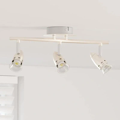 ManoManoGeneral description This modern ceiling spotlight is a perfect addition to any lighting setup, combining style and practicality. The sleek matte nickel finish provides a contemporary vibe, making it ideal for living rooms, bedrooms, and offices. Designed for focused lighting, the rotatable arms allow you to direct light where you need it most. Its high-quality steel construction ensures durability and elegance in any modern space. Technical specifications Colour: Matt nickel Material: Steel Overall dimensions: 36.5 x 10 x 12.5 cm (L x W x H) Weight: 0.5 kg Power source: Plug Indoor / outdoor: Indoor only Assembly required: Yes EAN: 8721158710741 SKU: 4108218 Installation Easy to assemble with a screwdriver and drill by following the provided instructions. Usage Adjustable head allows for flexible lighting direction, suitable for reading, working, or highlighting specific areas. Simple maintenance by wiping down with a dry cloth. Other information This appliance should not be used by