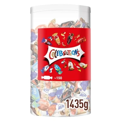 A delicious and indulgent mix of everyone's favourite mini-sized milk chocolate bars and chocolate biscuits including Mars, Twix, Snickers, Bounty, Galaxy, Maltesers, and Milky Way Celebrations chocolates are the perfect gift for any occasion! Whether you're looking for a sweet treat for a birthday, anniversary, or just to show someone you care, these chocolates are sure to delight Struggling to find the perfect present for that hard-to-please person in your life? Celebrations chocolates are the answer; not only will they love the gift, but they may even share a few chocolates with you as a thank you Celebrations chocolates are the perfect choice to share with those around you; whether you're looking to bring a bit of joy to a family event or simply stocking the snack station, a selection of everyone's favourites are sure to please A 1.4kg Tube gift box of individually wrapped milk chocolate bars in an assortment of flavours, perfect for sharing with friends and family