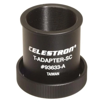 THE CELESTRON T-ADAPTER ATTACHES AN SLR OR DSLR CAMERA TO A SCHMIDT-CASSEGRAIN TELESCOPE: Ideal for prime focus photography THREADS ON TO THE REAR CELL: Of Schmidt-Cassegrain telescopes NOTE: T-threads accept camera brand specific T-Ring (sold separately) MAGNIFICATION: Dependent on the telescope’s focal length UNBEATABLE WARRANTY AND CUSTOMER SUPPORT: Buy with confidence from a leading telescope brand, based in California since 1960; You’ll also receive a two-year warranty