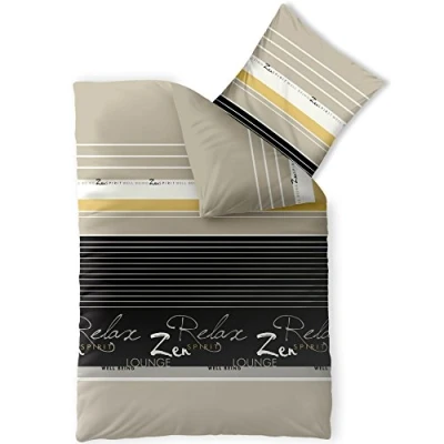 CelinaTex Fashion Bed Linen 155 x 220 cm 2 Piece Cotton Lian Stripes Words Beige Black White