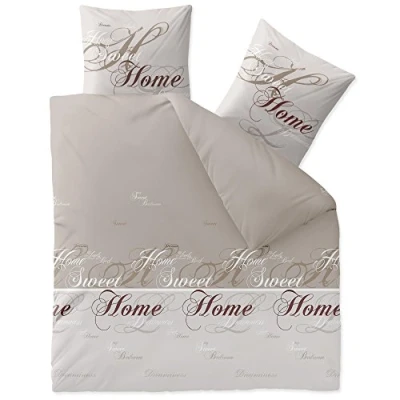 CelinaTex Fashion Bed Linen 200 x 220 cm 3 Piece Cotton Sarah Words Beige Brown