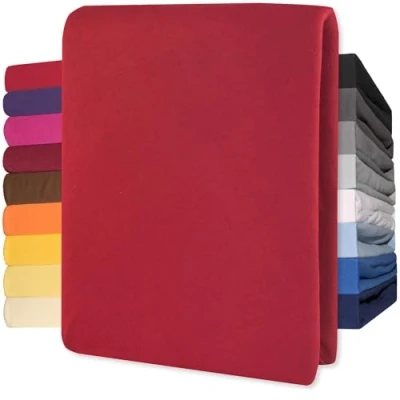 CelinaTex Lucina Topper Fitted Sheet Divan Cover Cotton 140x200 160x200 cm ruby red