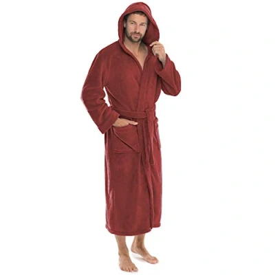 CelinaTex Men's Florida Bathrobe, Hooded, Plain, Long, Patched Pockets, Unisex, Microfibre, Coral Fleece, Chilli Red, Large