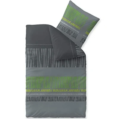 CelinaTex Touchme Flannelette Bed Linen 155 x 220 cm 2 Piece Cotton Duvet Cover Set, Bedding Set for Summer and Winter, All Year Round, Easy Care, Anni Grey Black Green